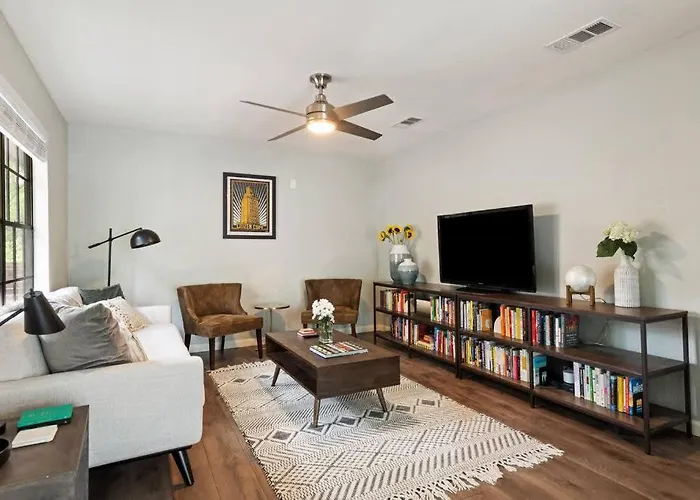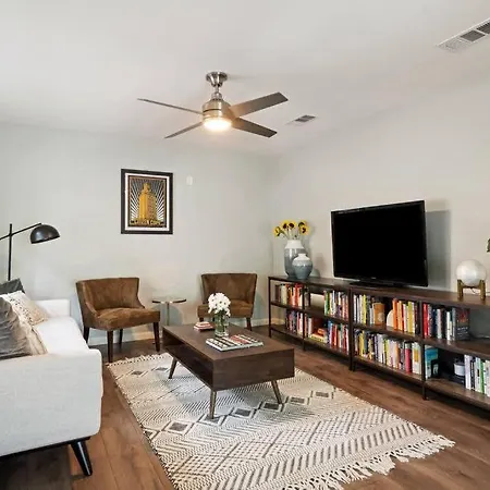 The Charming South Austin 2 Bedroom Home is a serene retreat perfectly positioned in the vibrant heart of Austin. Located just 10 kilometers from the esteemed University of Texas, this inviting residence offers a convenient base for both leisure and business travelers. Guests will appreciate having the Austin Convention Center a mere 7.5 kilometers away, ensuring easy access to events and gatherings, all while being nestled in a tranquil neighborhood.